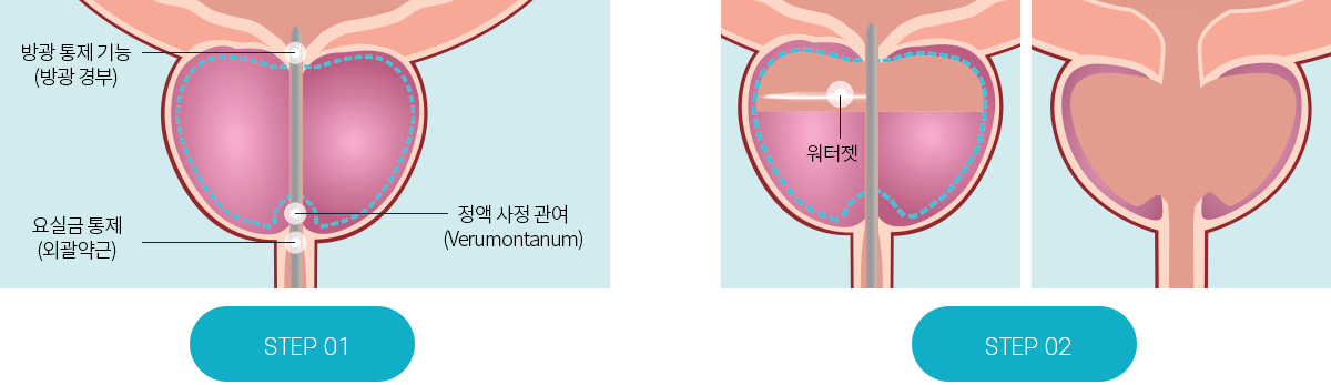 실시간 전립선 및 방광 주변 구조를 분석 후 로봇 기술로 제어되는 무열워터젯을 사용하여